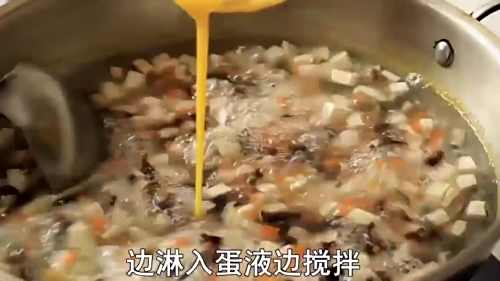 9锅中淋入打散的蛋液并搅拌。