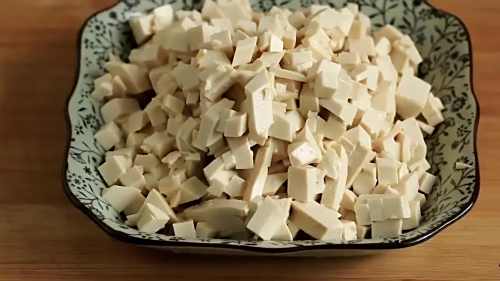 1嫩豆腐切小丁。
