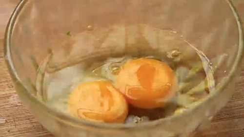 8碗中打散两个鸡蛋。