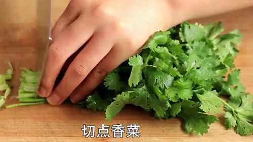 4香菜切碎备用。
