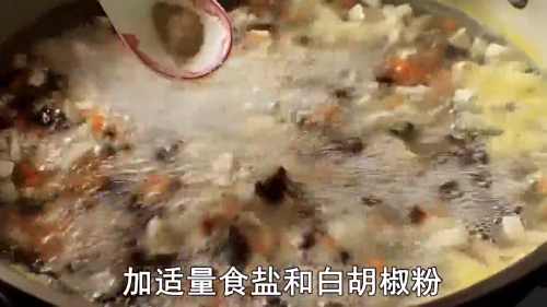 7加入水淀粉勾芡,加入适量食盐和白胡椒粉。