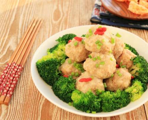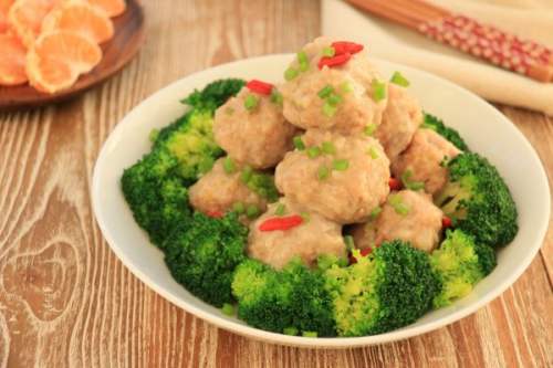 11将西兰花和肉丸摆好,浇上烧好的芡汁即可。