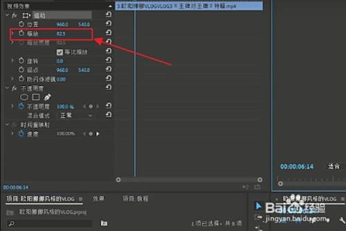 接着我们选择视频素材,进入【效果控件】,调整一下视频的【缩放】比例。