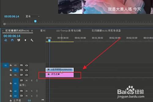如图所示,我们将设置好的【颜色遮罩】放置在视频素材下方。