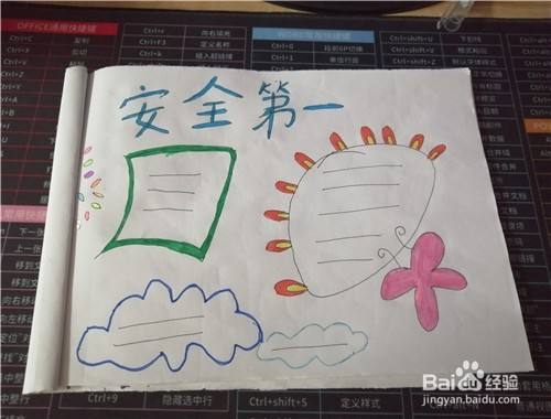 画好后,我们在空白处画上横线。最后一步,涂上颜色这样我们的手抄报就画好了。