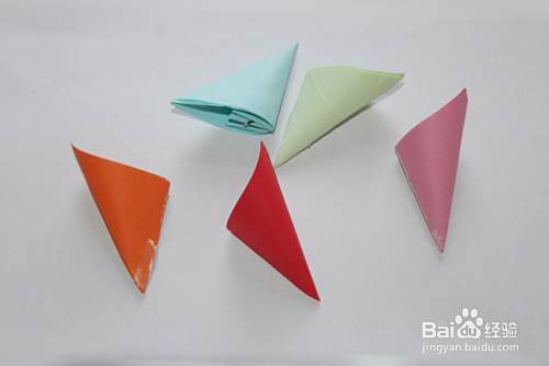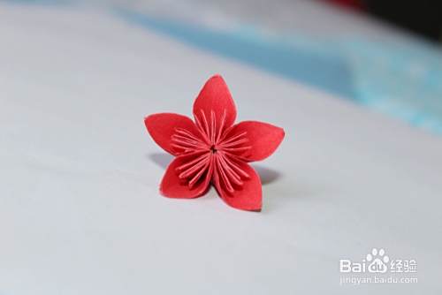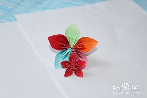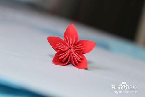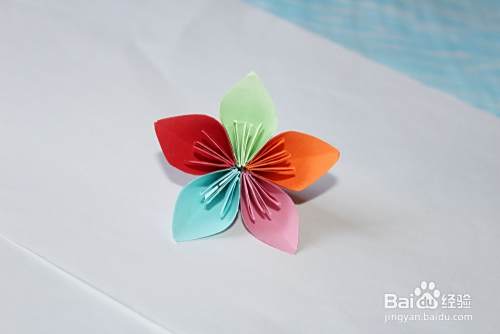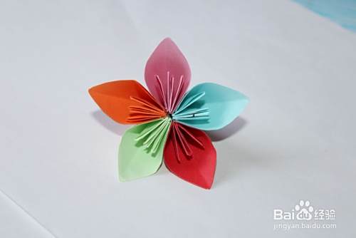 然后将五个花瓣粘到一起,展开即可(大家注意双面胶或者其他胶都要粘在花瓣的中间线的位置)。