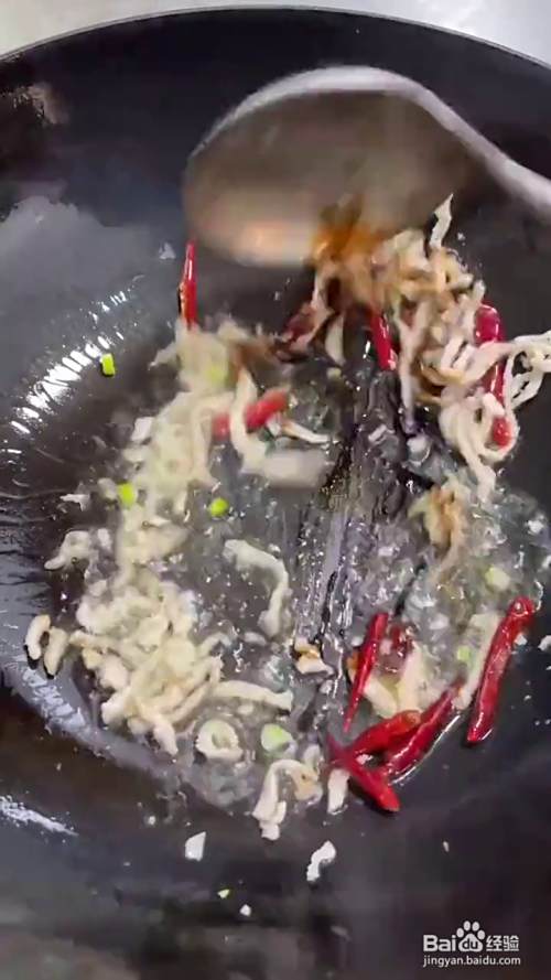 起锅烧油肉丝炒香干辣椒,葱姜来上一点酱油给肉丝上色,家常菜必须来点花椒面,下入豆芽加盐,味精,鸡精,大火爆炒