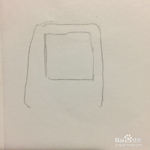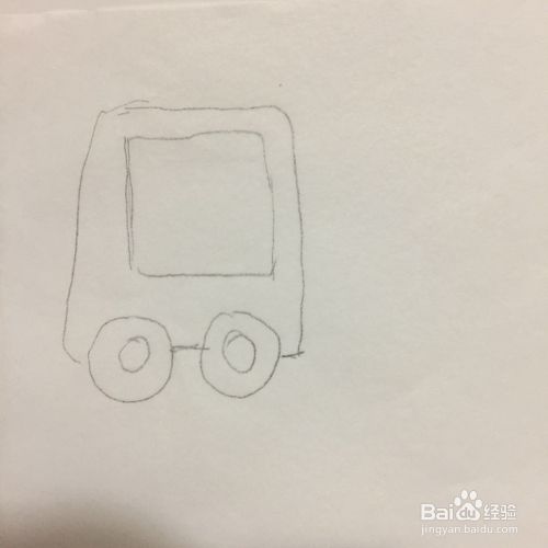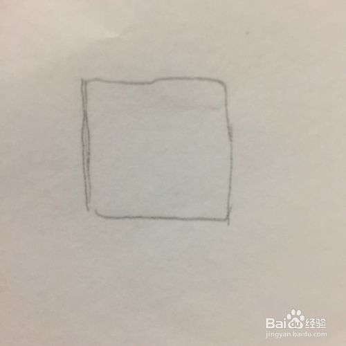 首先在a4纸上画出一个小的正方形,如下图。注意画这部分的时候不要画得太大,因为它的大小直接决定了画出来的卡车大小。