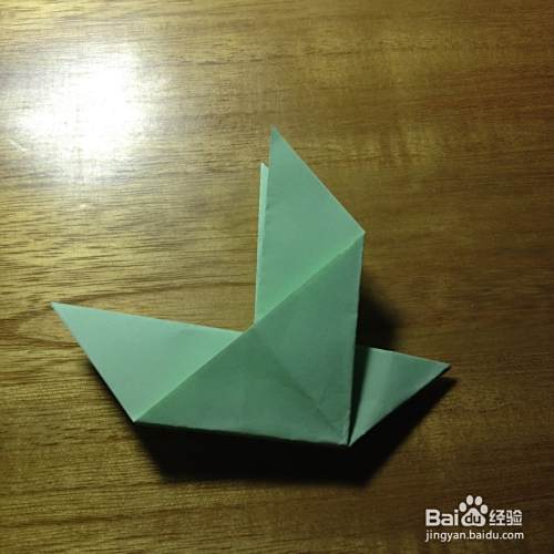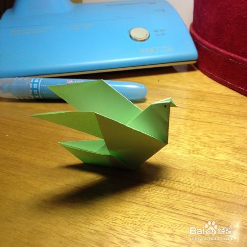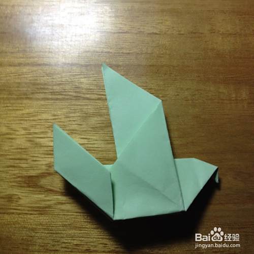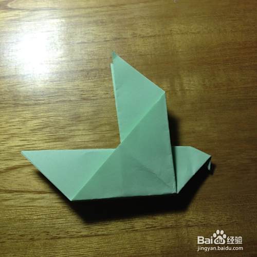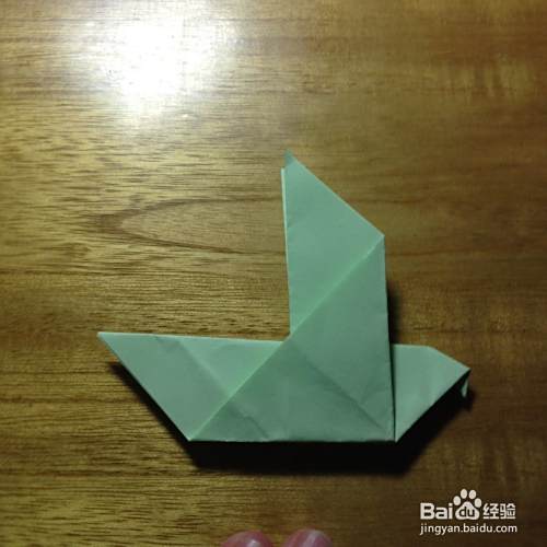 沿折痕将尾部向外翻折,折出格子的尾巴。在用笔画出鸽子的眼睛,一只鸽子就完成了。
