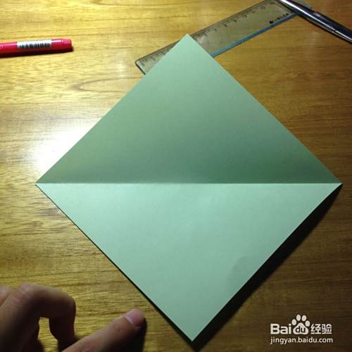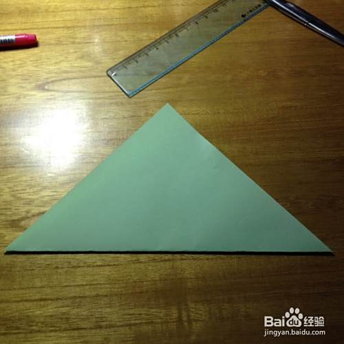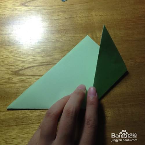将折好的纸翻过来,沿图中的虚线对折,这出一个小三角形。
