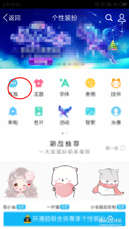 然后会进入到【个性装扮】的页面,继续点击该界面中的【气泡】选项。