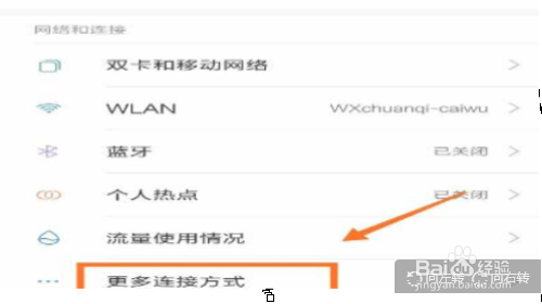 在小米手机的设置界面中,选择“更多连接方式”并进入。