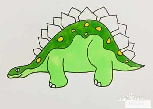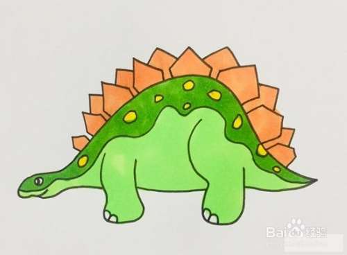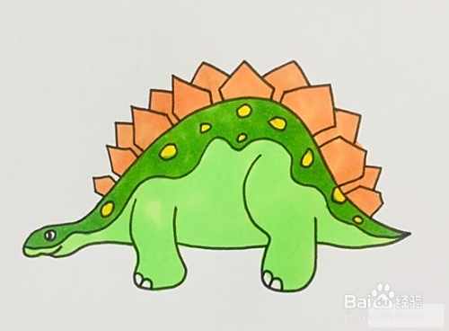 66、最后给背上的多边形鳞片用橙色涂上,身躯庞大的剑龙就画好啦。END