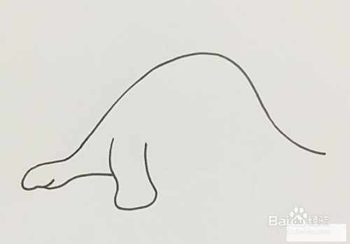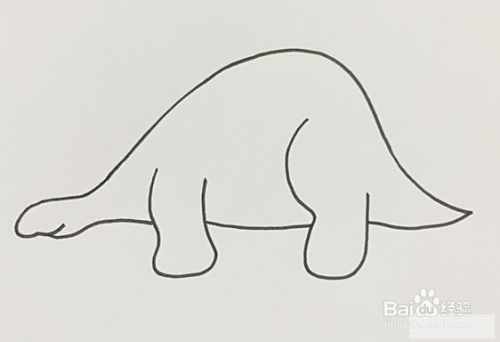 22、将剑龙的尾巴与身体底部的轮廓线条补充画完整后,将身侧的后腿也画出来。
