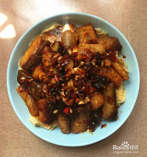 锅中烧菜籽油,油热后淋葱花上,吃时拌匀即可。