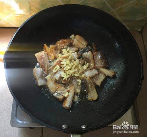中小火煎至两面焦黄,加入大蒜,生姜末。