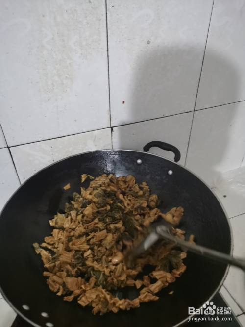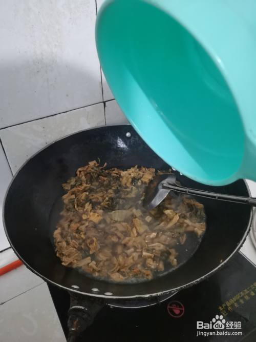 酸菜干炒香后加水和盐盖锅盖煮,煮够一定时间熟软后加入鸡精就OK了。