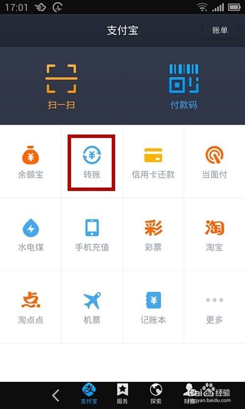 首先,你的手机里要有支付宝的APP,然后点击打开登入。然后点击 转 账。