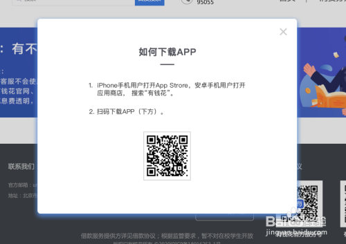 电脑网页版:搜索“有钱花”进入官方网站界面,在下方显示“下载APP”控件处点击下载。