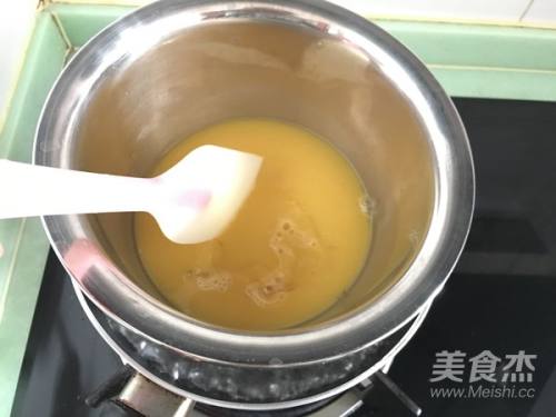 13做镜面:橙汁200ml加提前软化的5克吉利丁片,同样隔热水进行融化.待凉后备用。