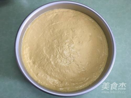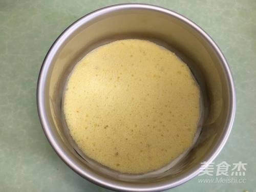 11将芒果慕斯液一半倒入提前准备的模具中抹平。