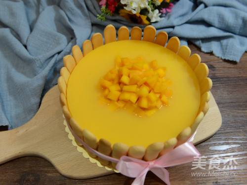 18在慕斯蛋糕周围围上一圈手指饼干,蛋糕也很漂亮。