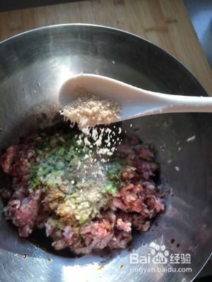 猪肉最好用绞的肉馅,因为手切的和茼蒿在一起不成团