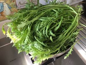 茼蒿洗净,控干净水份后切成小丁。装入盆里,倒入凉透的花椒油,双手扶住盆沿上下起伏颠动盆子,用筷子轻轻顺时针搅拌也可以,使茼蒿粒均匀裹住花椒油。这是包茼蒿饺子不出水的关键