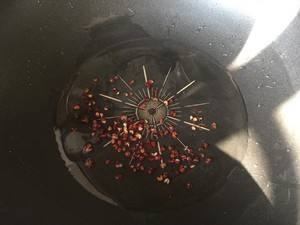 炸一些花椒油凉透用漏网滤除花椒粒,凉透备用