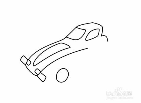 最后,靠近我们视野的这部用斜线将两个前后两个轮子连接起来,勾画出车子的地盘线。这样,另外一种类型的赛车就完成了。