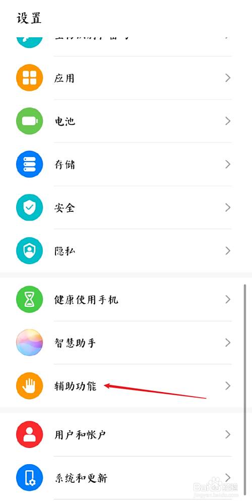 打开手机,进入设置页面并点击辅助功能。