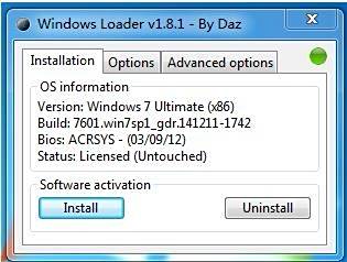 双击“Windows Loader”应用程序,出现安装界面,如下图,点击“Install”进行安装。