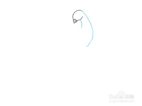 从颈部画一条长长的弯曲线。在线的末尾,使用连接的"U"形线条绘制羽毛。