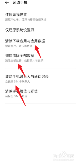选择清除各项数据,即可完成手机格式化。