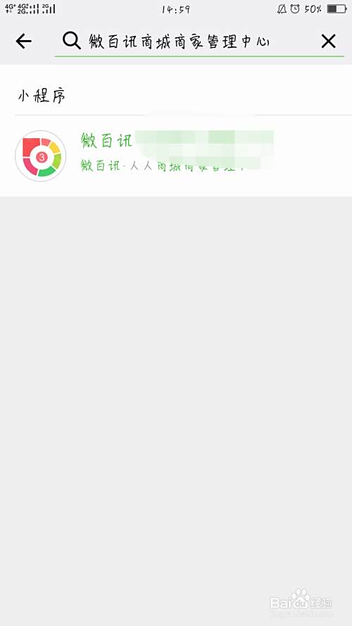 输入你想要关注的小程序名称,如图所示。(有些搜不到结果说明还没有相关小程序),我们可以点击搜索列表的一个小程序进去。
