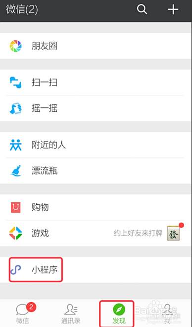 首先把微信升级到最新版,然后打开微信,在【发现】找到【小程序】。