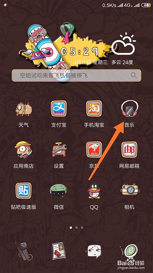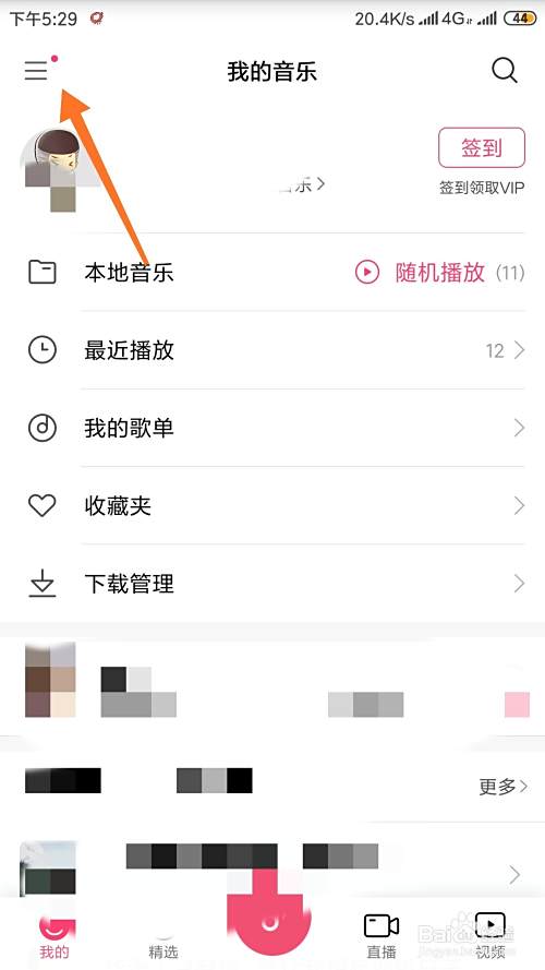 然后,我们就进入了音乐界面,点击左上角的横线图标,如下图所示。
