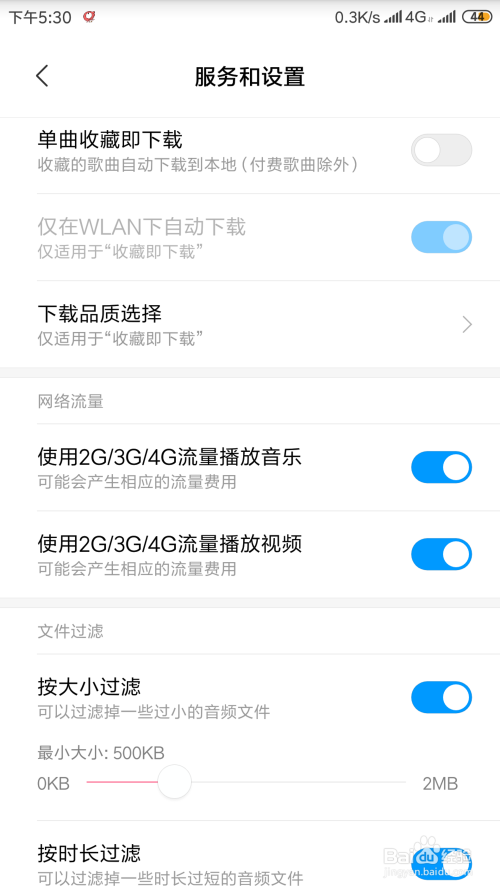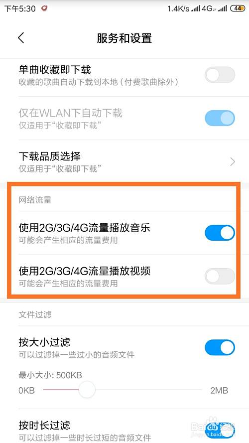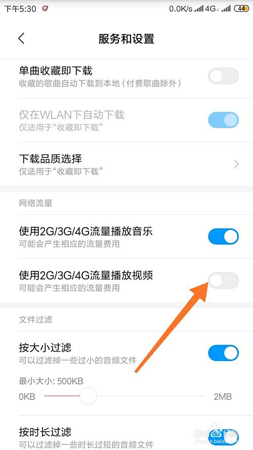 我们可以发现,使用流量播放音乐视频的开关此时是关闭的,如下