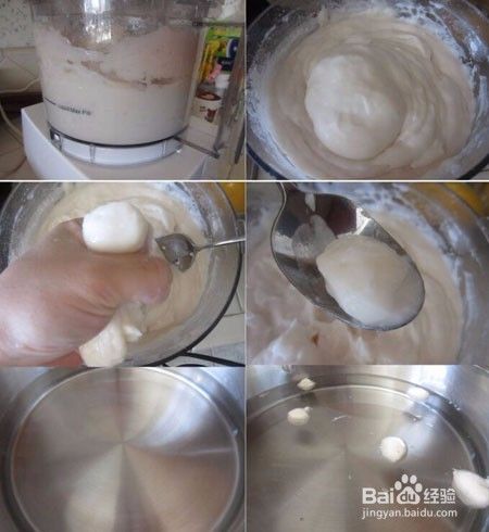 注意事项四:鱼茸里加上加多少水要看鱼肉本身的含水量大小而定,龙利鱼本身含水量很大,所以我除了蛋清和葱姜泥没有加水。强调一点点加水到鱼茸里,一开始不要加多了,鱼茸太干的话宁可加打发的蛋清来稀释。如果不幸加多了水,鱼茸太稀了,就加一点勾芡用的淀粉,一定不能多加。做了N次鱼汆鱼糕的经验告诉我选择木薯淀粉的效果最好。因为富含支链多糖的缘故吧,木薯淀粉会增加鱼汆鱼糕滑顺的口感,加了淀粉的鱼茸挤出的鱼汆形状也更好看些。再强调一遍,最重要的标准仍然是,打好的鱼茸能在冷水里漂起来。很多方子加猪油其实就是走了一个捷径,我们都知道油比水轻啊,加猪油帮助鱼茸漂起来是没错的,丧失的是口感和味道啊。另外一个就是顺一个方向打发鱼茸和加入打发蛋白,搅动时不够上劲,蛋白打发不充分,鱼茸是不合格的。加了淀粉可以帮助鱼茸成型成团,鱼茸打发上劲不够时加淀粉又是捷径,当然也会大大损失味道和口感。制作的关键仍是打发鱼茸,当鱼肉和蛋白的比例合适且打发彻底的时候,什么猪油啊淀粉啊都不用加。