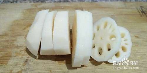 接着,把准备好的莲藕清洗干净,然后去皮,切成小块。