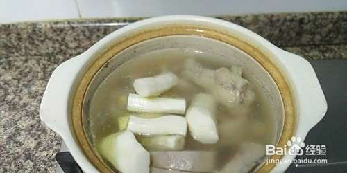 一个小时后,再往锅里放入切块的山药,再煮30分钟。