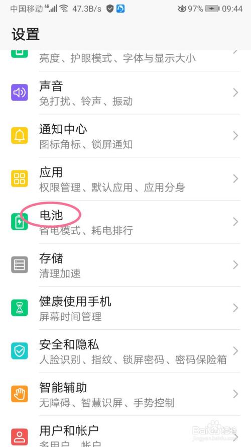 进入手机设置的页面点击【电池】选项