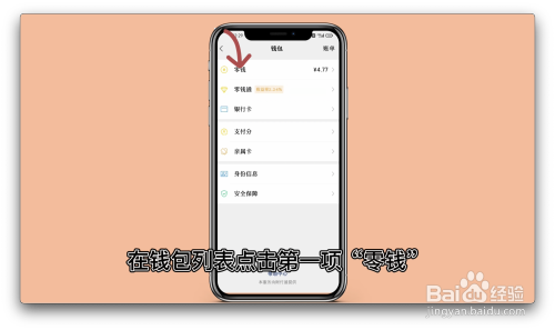 在钱包列表点击第一项“零钱”,点击“提现”按钮。