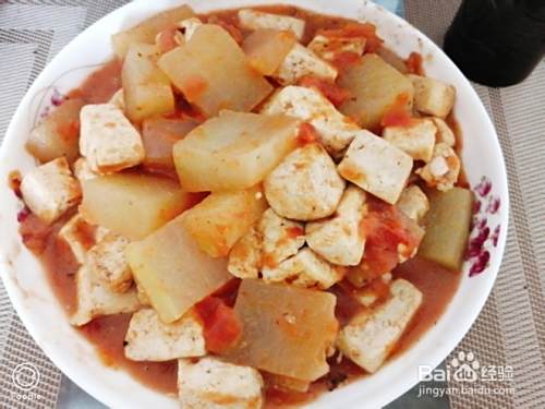 一道减肥减脂低油少盐的西红柿冬瓜炖豆腐就做成啦!嫌颜色不够重的朋友可以多加一个或半个西红柿,或下入一勺番茄酱(番茄沙司均可,看个人口味)。
