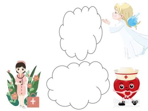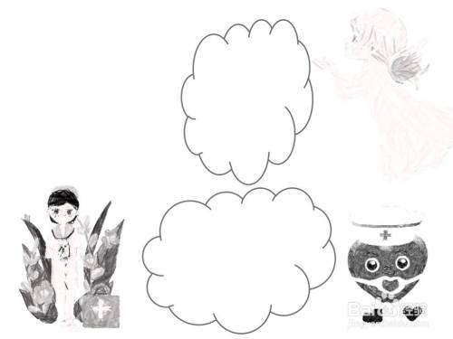 然后用铅笔绘画出一个美丽护士的形象,以及天使的形象,表达出:护士就是天使;用彩笔上色。