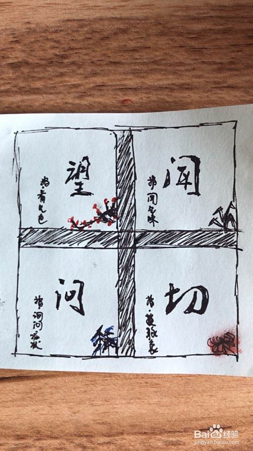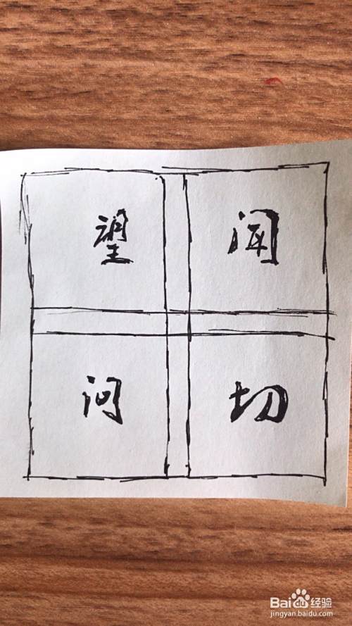 首先在纸上画一个井字格的形状,分出四块同等大小的区域来排版四诊;