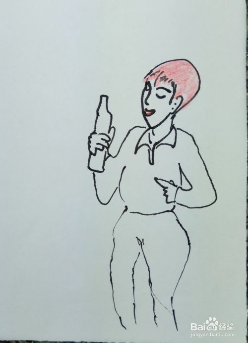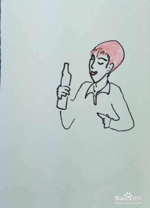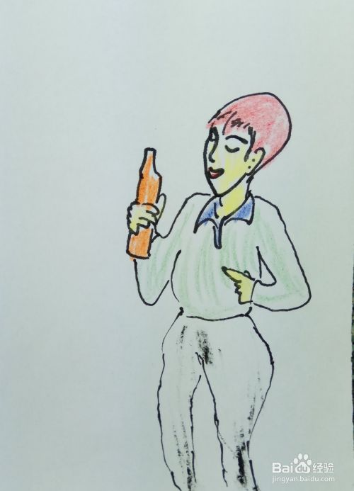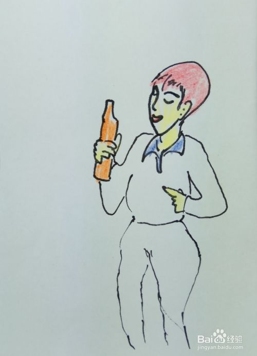 用水彩笔涂这个人的皮肤色彩,瓶子色彩。