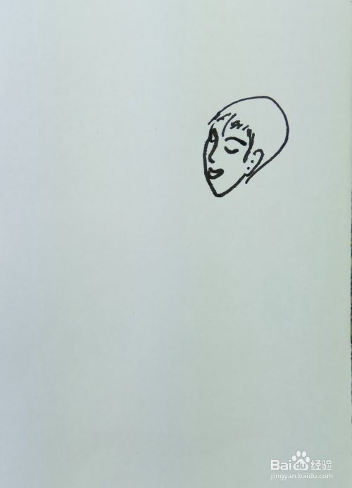 在白纸上用线条和曲线,画出一个男人的头部轮廓,并画出他的五官和头发。