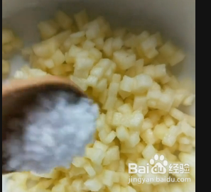 苹果洗净去皮,切成小丁,放入碗中,