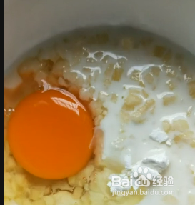紧接着加入白糖、纯牛奶、淀粉、蜂蜜。一个鸡蛋搅拌均匀,